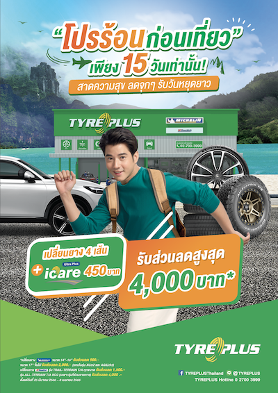 ไทร์พลัส ศูนย์บริการรถยนต์ครบวงจร จัดแคมเปญพิเศษต้อนรับเทศกาลสงกรานต์ให้ลูกค้าที่ซื้อยางมิชลินและบีเอฟกู๊ดริชสำหรับรถยนต์นั่งส่วนบุคคลและรถเอนกประสงค์ SUV แจกส่วนลด มูลค่าสูงสุด 4,000 บาท เมื่อซื้อยาง 4 เส้น ในรุ่นที่ร่วมรายการ ตั้งแต่วันนี้ถึง 8 เมษายน 2566 ตามเงื่อนไขดังนี้
