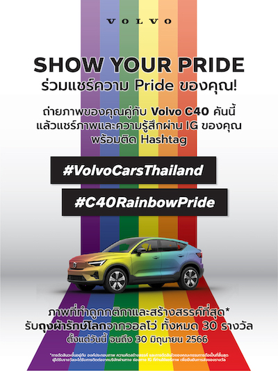 ในประเทศไทย ระหว่างวันที่ 9 – 18 มิถุนายน 2566 วอลโว่ คาร์ ยังได้จัดงาน Volvo Roadshow Celebrate Pride แสดงยนตรกรรมจากวอลโว่ ในโซน Mega Plaza ศูนย์การค้าเมกาบางนา โดยผู้สนใจจะได้พบกับ Volvo C40 Recharge Pure Electric รถไฟฟ้า 100% สไตล์คูเป้ครอสโอเวอร์,