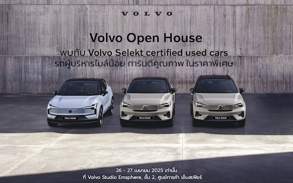 วอลโว คาร์ ประเทศไทย เปิดโอกาสให้ผู้สนใจสามารถเป็นเจ้าของรถวอลโว่ได้ง่ายขึ้นกับ กิจกรรม Volvo Open House งานจำหน่ายรถผู้บริหาร รถทดลองขับ รถป้ายแดงเลขไมล์น้อย ที่ได้รับการรับประกันคุณภาพจากแบรนด์วอลโว่ซึ่งนำมาให้ผู้สนใจเลือกสรร ในราคาพิเศษเริ่มต้นเพียง 1,290,000 บาท สำหรับ Volvo EX30