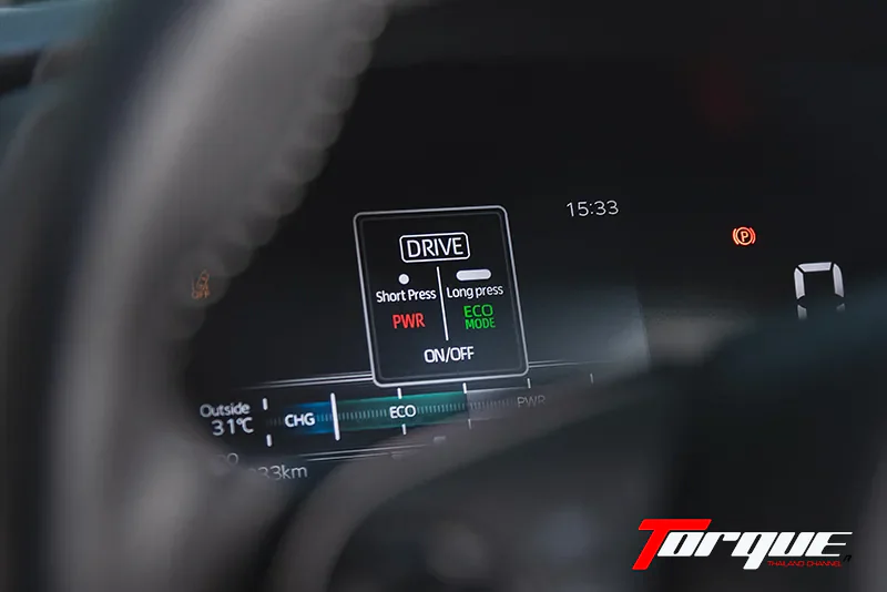 เพราะฉะนั้นอารมณ์ของการขับขี่จึงเป็นสไตล์อัตราเร่งแบบเนียนๆ ความเร็วเพิ่มขึ้นแบบต่อเนื่องมากกว่าแรงดึงแบบหลังติดเบาะ ไม่ว่าจะเปลี่ยนโหมดการขับขี่ไปใช้ Eco, Normal หรือ Power ก็ตาม