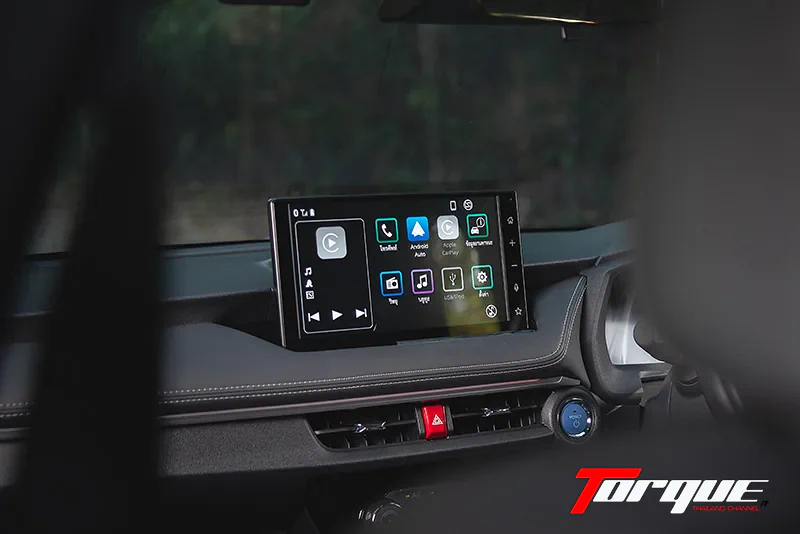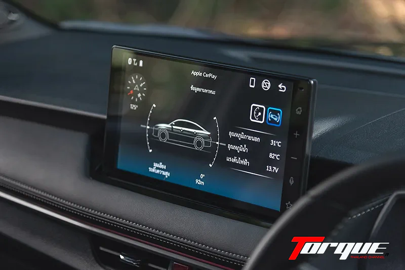 หน้าจอ Infotainment ระบบสัมผัสขนาด 10.1 นิ้ว ตอบสนองได้ฉับไวใกล้เคียงกับสมาร์ตโฟน ออกแบบให้ไอค่อนต่างๆ มีขนาดใหญ่จึงสามารถกดได้ง่ายขณะขับขี่ กราฟฟิกไม่หวือหวาฉูดฉาดแต่ก็มีข้อดีที่สามารถอ่านค่าหรือข้อมูลต่างๆ ได้โดยไม่ต้องละสายตาจากถนนนานๆ