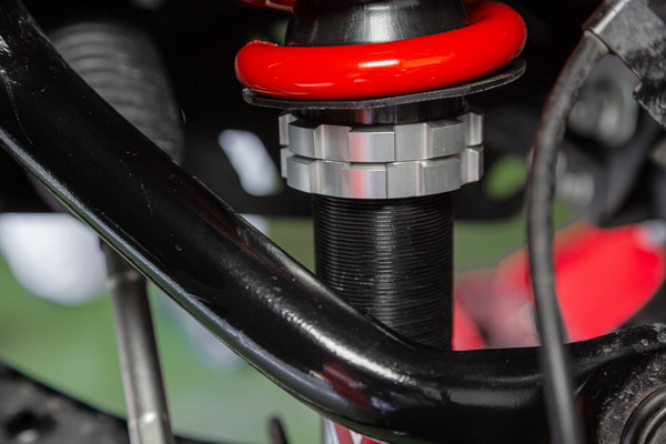 - วัสดุส่วนประกอบโช้คอัพสเปคเดียวกับโช้คอัพรถแข่งเช่นกัน คือ Aircraft Grade Aluminum มีน้ำหนักเบาลดภาระของช่วงล่าง ทนทานต่อการกัดกร่อนและไม่เป็นสนิม